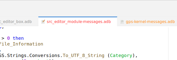 Starting with the 2026.2 release, GNAT Studio highlights editor tab labels in red for files with errors and orange for files with warnings, providing visual feedback on code issues.